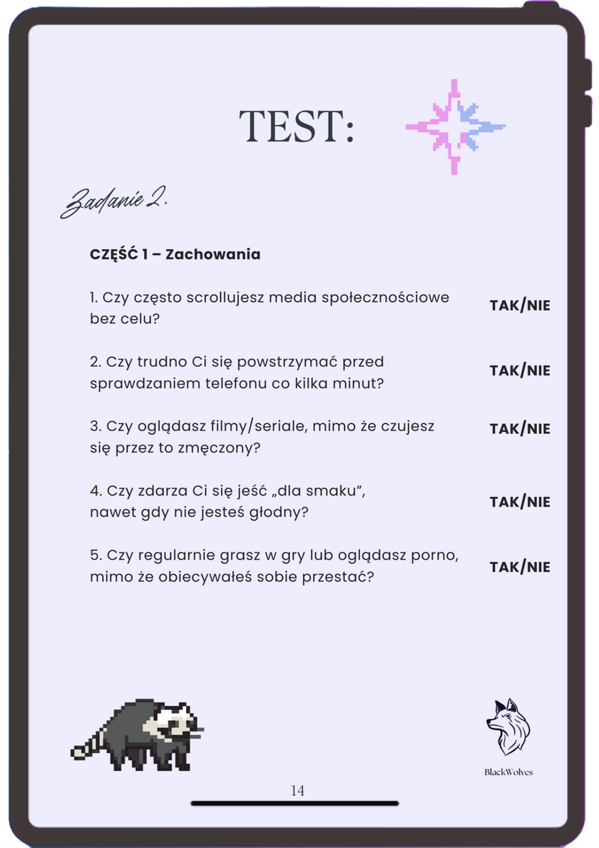 W środku znajduje się dużo treści opartych na wiedzy z książek psychiatrów, biologów, psychologów, a także z mojego własnego doświadczenia, czyli realnego wprowadzenia schematów w moje życie.W cenie obiadu otrzymujesz narzędzie do zmiany na lepsze w stosunkowo niewielkim czasie. W sferze nieustannego scrollowania bardzo łatwo jest wpaść